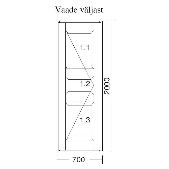 Mõõtmed 700 × 115 × 2000 mm